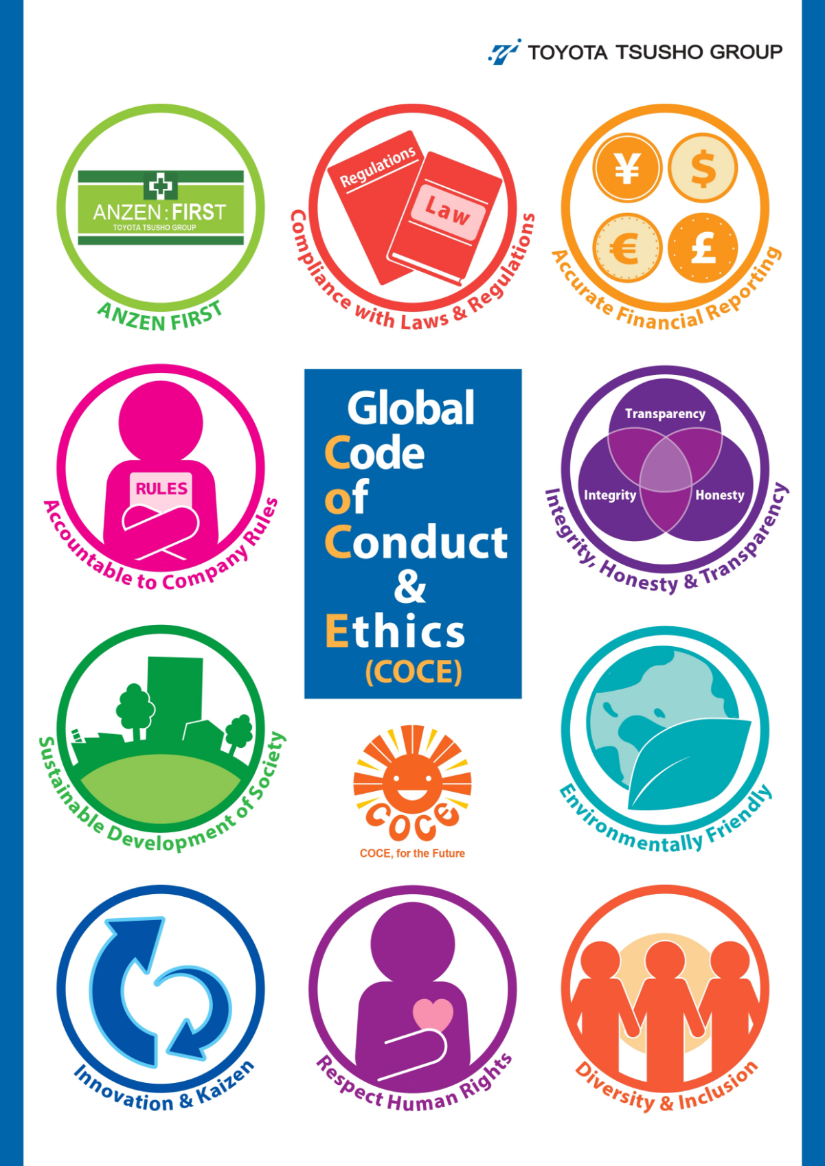 Logo shows that “as the shining sun is the source of energy for life, the COCE is the source of energy for whole Toyota Tsusho Group”.